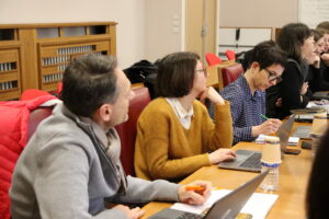 La seconde séquence, organisée le mercredi, était consacrée à la présentation des investigations approfondies conduites dans le champ des conventions et accords collectifs afin de cerner la nature des rapports qui se nouent – par-delà le prisme du droit étatique – entre les niveaux de négociation de l’entreprise et de la branche. Les travaux, tout à fait remarquables, présentés par des doctorants et des étudiants à travers de multiples entrées thématiques (mesures relatives aux salariés en situation de handicap, QVT, garanties collectives complémentaires, CDD, travail temporaire et contrats de chantier ou d’opération, temps de travail, salariés aidants, GPEC et GEPP, etc.), ont fait ressortir des « réalités » qui restent le plus souvent dans l’angle mort des recherches – et pas uniquement en sciences juridiques. Les éclairages qu’ils ont apportés et les échanges qui les ont suscités ont ainsi permis de nourrir et d’enrichir le volet théorique du projet à partir de son ancrage « empirique ».